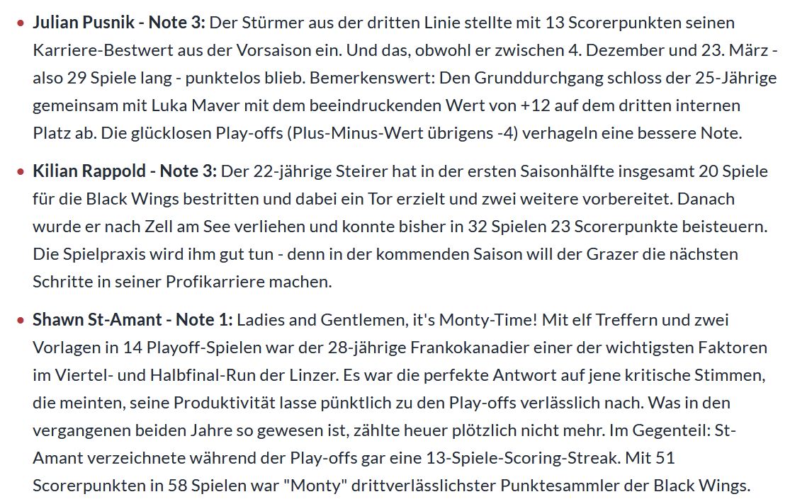 Feldner, Neubauer und Kragl hätten z.B. meine Erwartungen in 24/25 nicht erfüllt. Bei Collins wäre ich eher bei einem 3er und bei Tirronen bei einem 2er.
