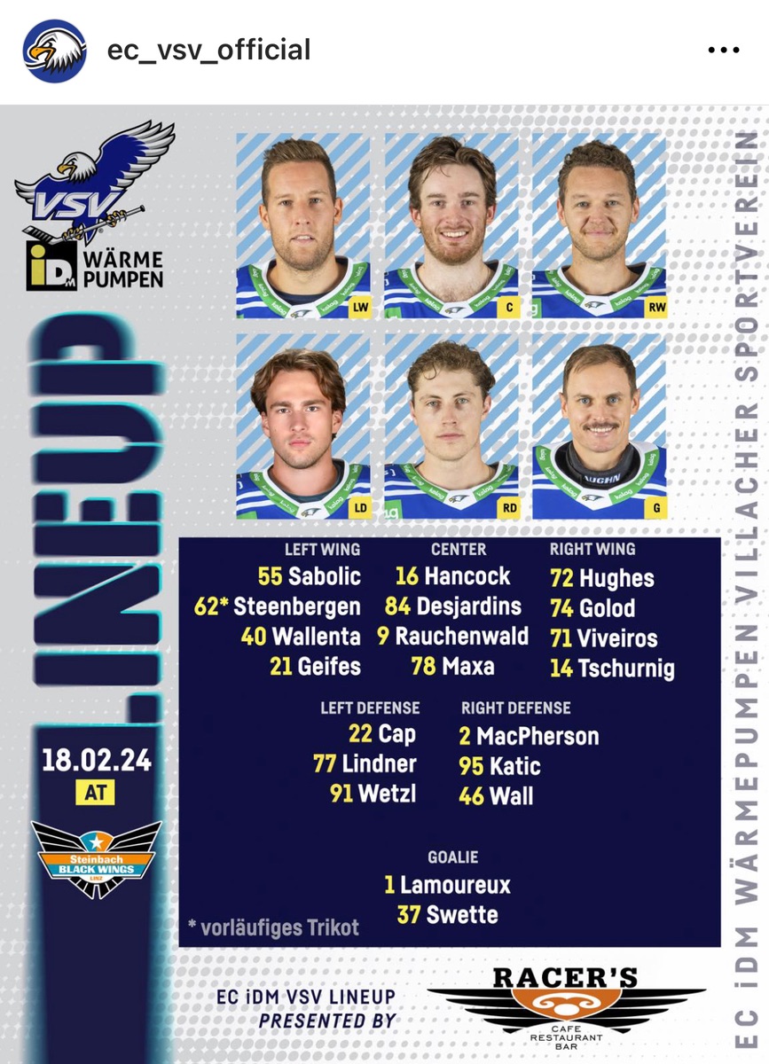 Da brauchens aber noch jemanden mit Doppelshifts. Geifes und Tschurning spielen in dieser Phase sicher nicht viele Shifts, außer man führt klar.