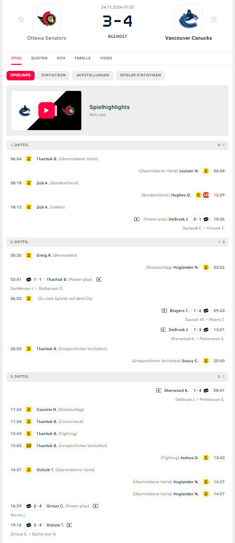 Senators vs Canucks (3:4)