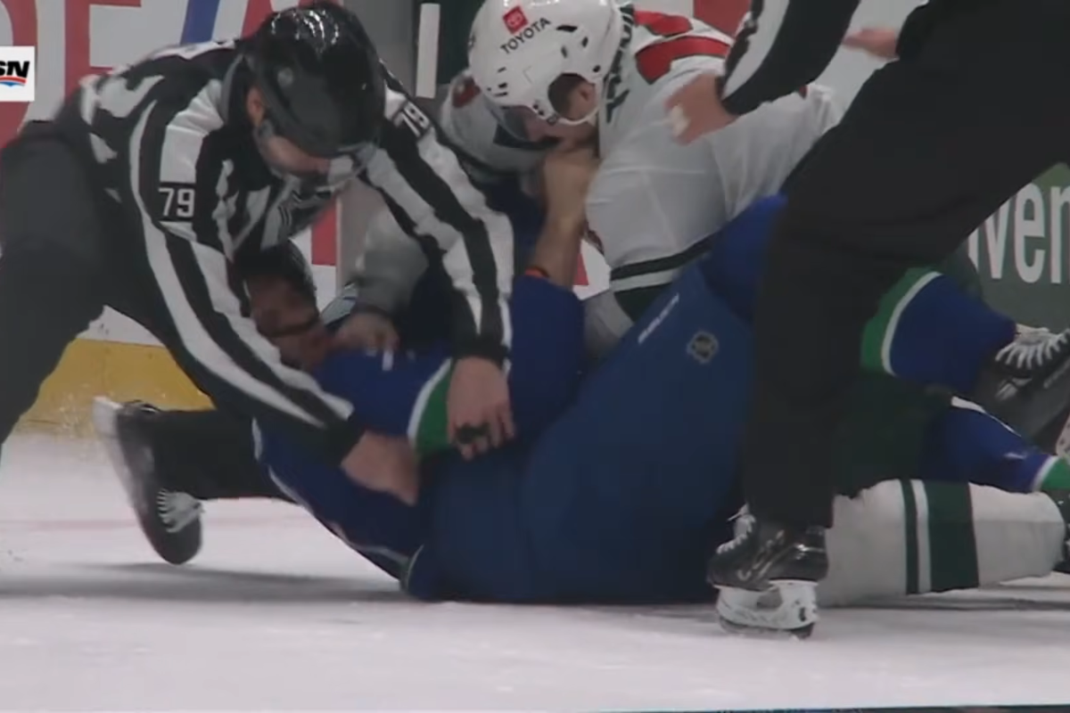 Ja grad noch einmal angesehen, 10 Spiele gabs, aber das war schon richtig schmutzig von Hartman, mit Schwung und dem Ellenbogen den Kopf ins Eis...
