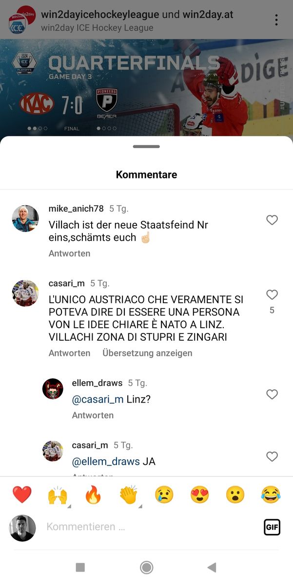 Weiß nicht, warum unter dem offiziellen Insta-Account der ICE offensichtlich rassistische Kommentare wie dieser nicht gelöscht werden.