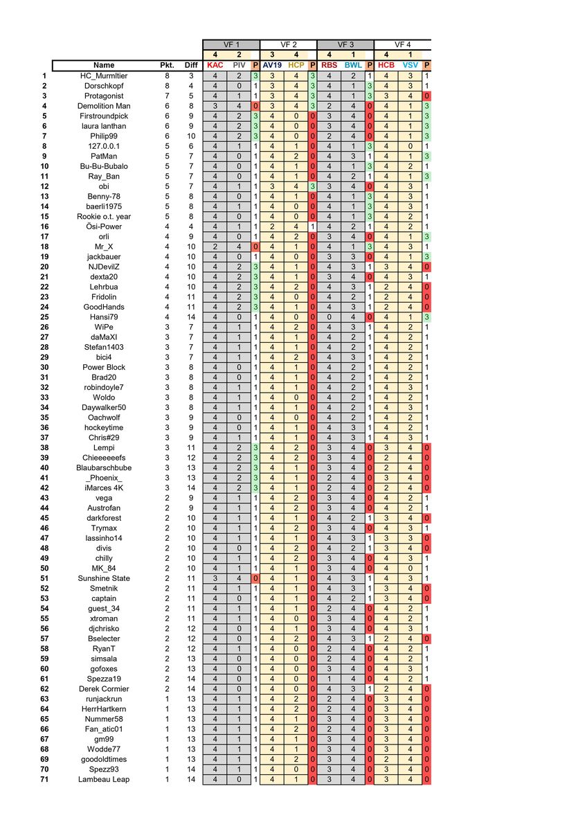 Zwischenstand nach dem VF