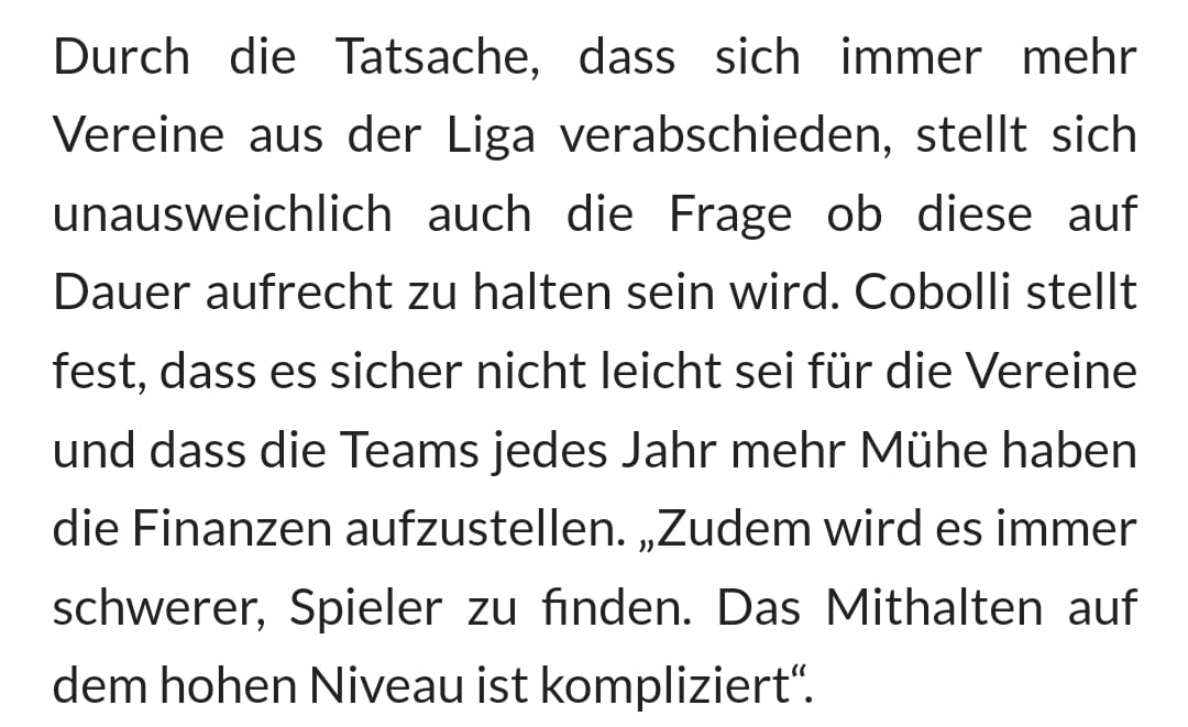 Wenn man sich die Stellungnahme aus dem Bregenzerwald durchliest, bekommt man eher das Gefühl man möchte eine bessere Amateurliga im Ausbildungssinne sein und nicht eine "2. Liga der ICE".
