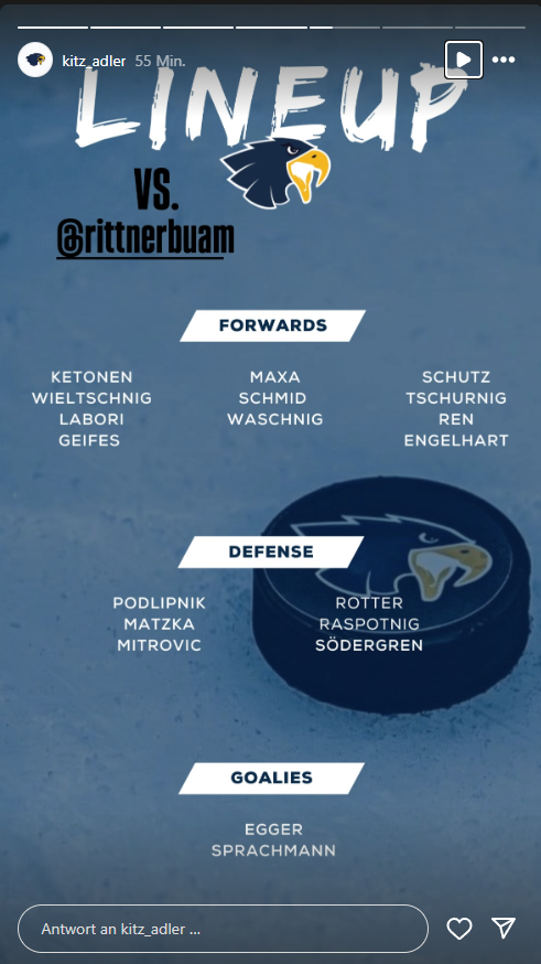 Zell hat übrigens von den Vienna Caps Aljaz Predan in den Kader berufen. Dieser wurde vor Transferschluss als Emergency-Player angemeldet. Er ersetzt vorübergehend Matt McLeod, welcher sich gegen Kitzbühel verletzt hat und zum Playoffstart ausfällt.