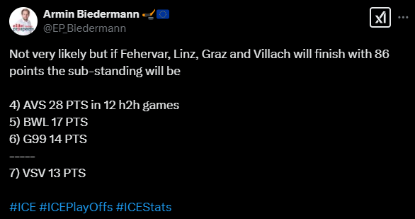 VSV hat noch drei Möglichkeiten auf Platz 6 wenn ich es richtig sehe (angenommen der VSV gewinnt gegen Asiago):