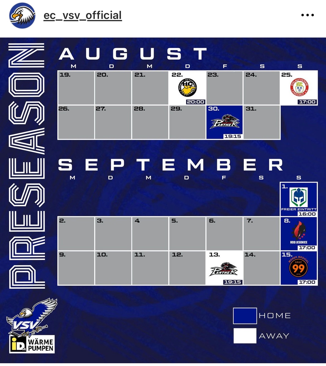 Fürchte eher, dass wir bis zum ersten Derby genau 0 Punkte haben. (Gegen Laibach und Graz werden wir auswärts nicht viel zu melden haben. Am ehesten kann es noch gegen die Capitals mit 3 Punkten klappen, aber auch die dürften heuer stärker als im Vorjahr sein).6 Punkte aus den zwei Heimspielen gegen Voralberg und Innsbruck nach dem Derby könnte sich ausgehen.Ich rechne nach 6 Runden mit maximal 9 Punkten.