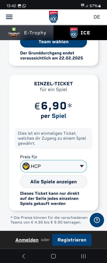 Laut ICE Aussendung kosten alle Einzelpartien 9,90€ :/
