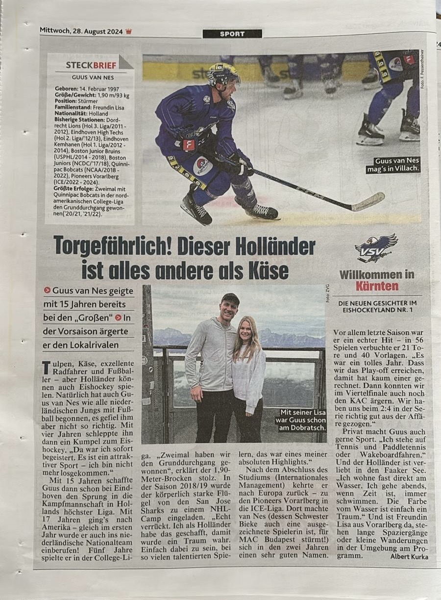 Mit 15 Jahren durfte Guus bei den „Großen“ ranDie „Krone“ stellt mit der Serie „Willkommen in Kärnten“ wieder die neuen Legionäre der Kärntner Eishockey-Klubs vor. Neo-VSV-Stürmer Guus van Nes ...www.krone.at -