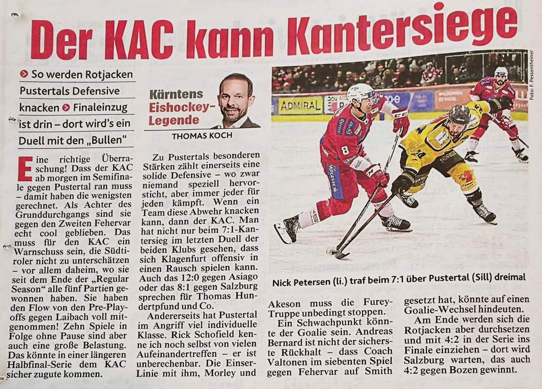 Pustertal ist on Fire, das stimmt natürlich, aber trotzdem wird der KAC diese Serie "souverän" gewinnen!! Tippe auf ein 4:1 👍🏻