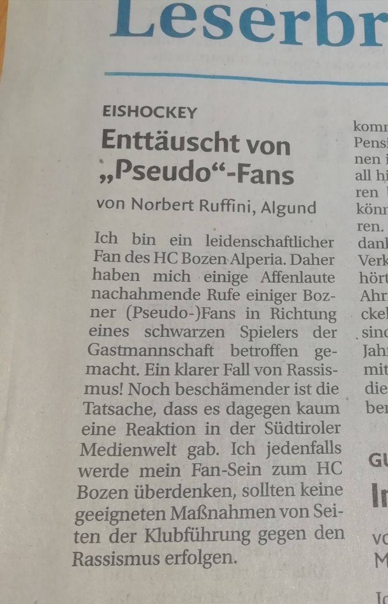 Leserbrief in der heutigen Tageszeitung "Dolomiten".