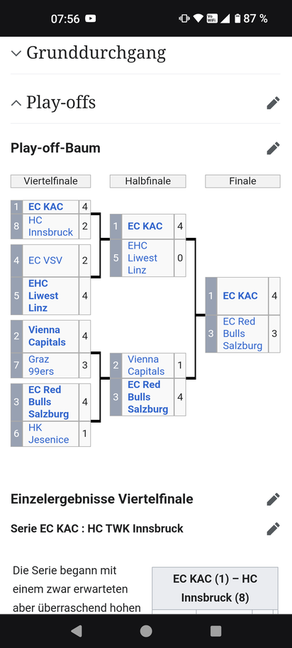 Für den KAC heute wohl schon eine kleine Vorentscheidung. Von einem 0:2 in der Serie würde man sich wohl nicht mehr zurück kämpfen können. Beim KAC hat man auch im Viertelfinale gesehen, dass sie, wenn es einmal nicht nach Wunsch läuft, schon mal verkrampfen und dann erst recht nichts mehr funktioniert.