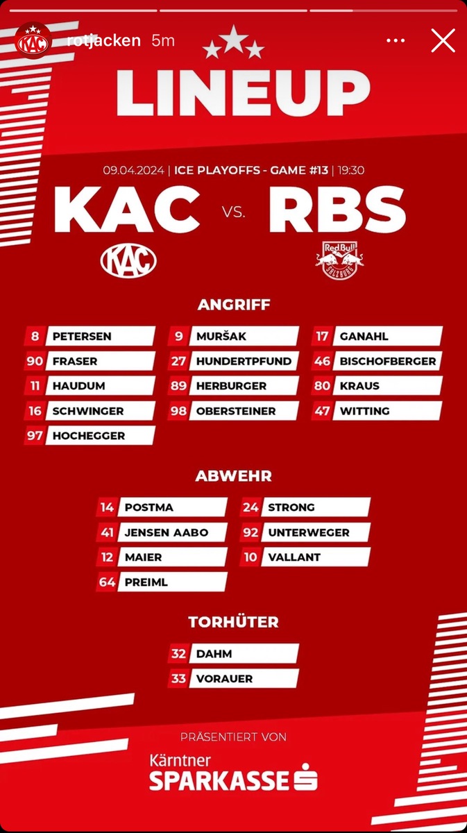 Finale 3 EC KAC vs EC Red Bull Salzburg, Di. 9.4.2024, 19:30 Puls24