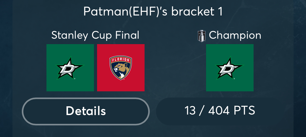 Bis jetzt hat man erst 13 Punkte erreichen können und das nur wenn man auf Rangers Sweep getippt hat. 404 Punkte kann man maximal erreichen, wenn man alles richtig tippt. ;)