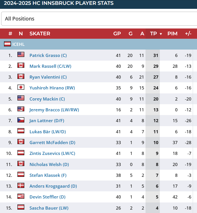 Meist ist es ja so, wenn die Vorsaison so richtig sch***** war, dass dann der darauffolgende Kader gepasst hat. So wird's bestimmt auch in Innsbruck sein.
