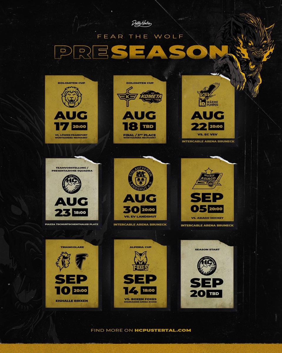 Am Montag ist es endlich soweit. Während unsere Spieler in diesen Tagen nacheinander im Pustertal eintrudeln, wird euer Lieblingsteam am Montag zum öffentlichen Trainingsauftakt um 18:30 Uhr vollzählig am Eis der Interacable Arena stehen. Nach der ersten Einheit von Headcoach Jason Jaspers gibt es das mittlerweile traditionelle Meet & Greet vor dem GoWest und somit die erste Möglichkeit, neben unseren langjährigen einheimischen Cracks auch unsere neuen Imports kennenzulernen. Wir freuen uns auf Montag und auf euch!!