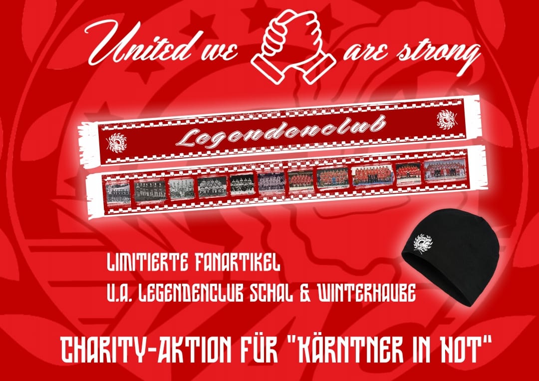 am Freitag startet im Rahmen des Fanfests unsere alljährliche Charity-Aktion! Auch in diesem Jahr sammeln wir unter dem Motto „United we are strong“ freiwillige Spenden für „ Kärntner in Not“, um gemeinsam einen wichtigen Beitrag für unsere Region zu leisten.