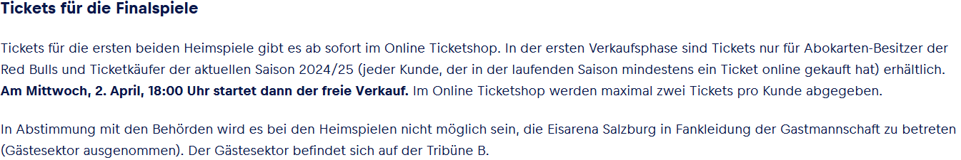 falls wer vorhat, das 4. spiel nach Salzburg zu fahren: Verkaufsstart Tickets jetzt dann um 18:00 uhr
