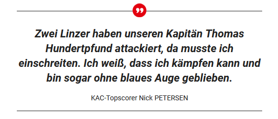 Dazu darf erwähnt werden, dass andere Teams ja auch von der Nachwuchsarbeit des KAC (wie auch der Red Bull-Akademie) profitieren. Alleine im Kader der Linzer stehen mit Würschl, Thialler, Witting und Lorenz Lindner vier KAC-Eigengewächse bzw. die zumindest die KAC Ausbildungsschiene absolviert haben. Kernberger, Steffler und Stefan Klassek fallen auch noch in diese Kategorie. Die ins Ausland gewechselten Burschen erwähne ich jetzt nicht...
