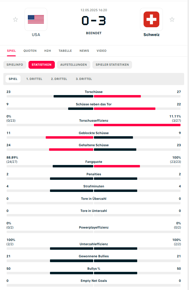 Schweiz 2:0 USA nach 40min