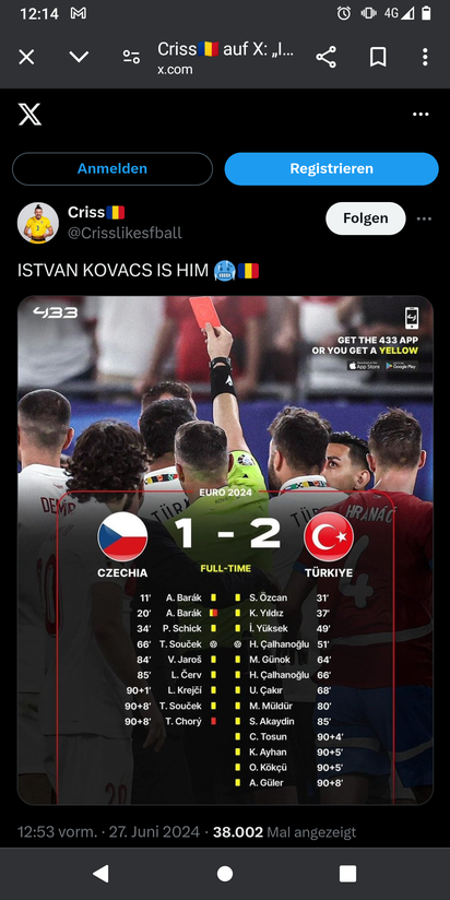 Hoffen wir, daß wir kein VF Rumänien gegen Türkei sehen. ![]()
