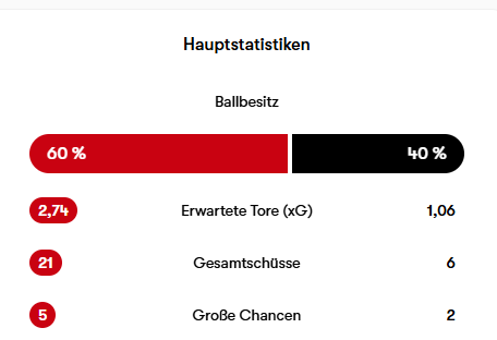 Österreich hat leider aus mind. 5 Großchancen und vielen dazu leider eben nur einmal was Zählbares machen können.