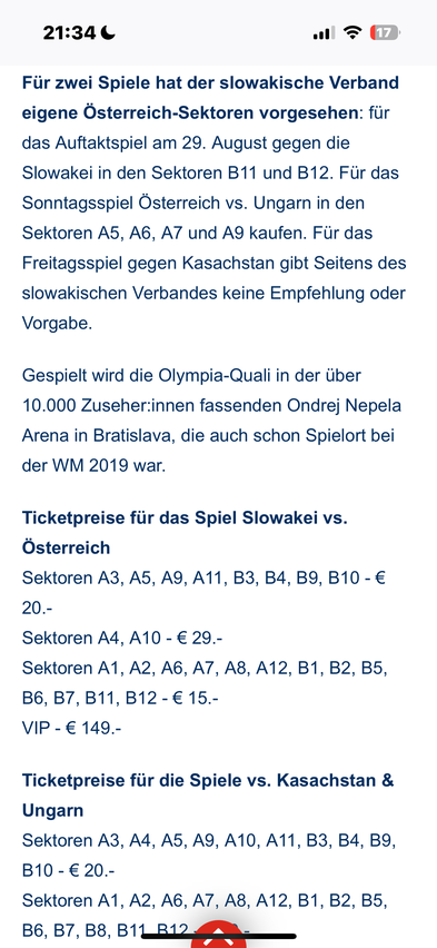 Mal was anderes: Für welchen Sektor habt ihr Karten für das Spiel Slowakei-Österreich am 29.8. gekauft?
