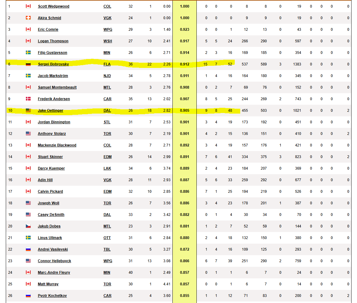 Oettinger hat in den Playoffs etwas abgebaut aber das "passiert" auch anderen Topgoalies wie Hellebuyck und Vasilevsky.
