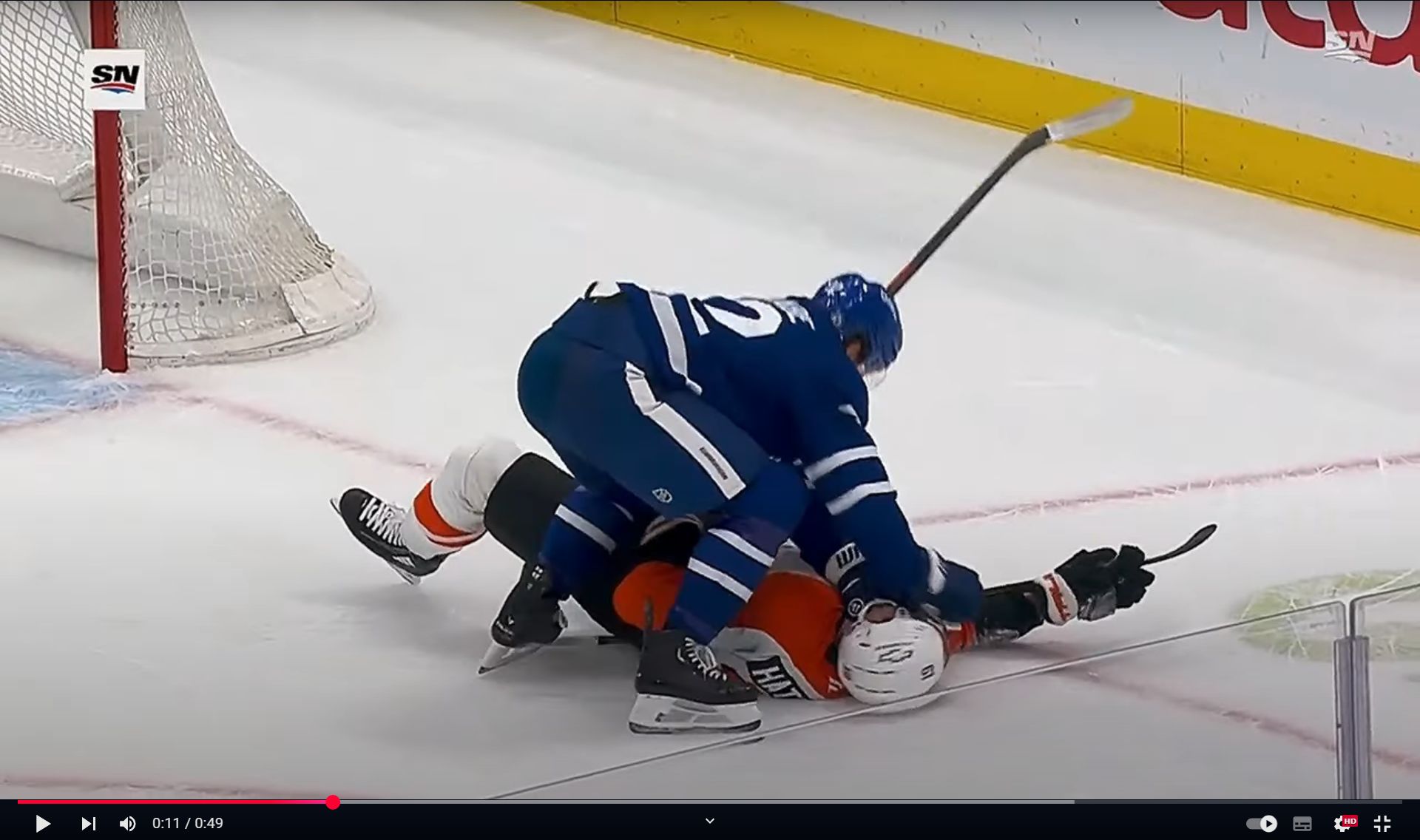 danach gehts weiter, McCabe Blick zum Ref, der hat die Situation ignoriert, also "muss" er eben nachhauen (tut er es nicht, eh schon wissen ... brauchen die Leafs wieder ein sondermeeting bezüglich Grit und so), das es ab da dann für beide Seiten gefährlich wurde steht außer Frage, beide landen mit dem Kopf am Eis, einer ist am Ende verletzt, zum Glück blieb Hildeby unversehrt, ansonsten hätte man zwei Verletzte dank einem bewussten Ignorieren seitens Ref