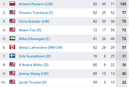 Was fällt auf? Die 1er Garnitur aka. PP1 der Rangers hat besser gefunkt als die der Bruins. Dafür siehts dahinter bzgl. Scoringtiefe eigentlich sogar schlechter aus, als bei Boston. Du hast in Boston einen ganzen Pulk von 40P Spielern, bei den Rangers kommt da bis auf Lafreniere nichts mehr. Wenn man Platz 10 im Scoring vergleicht: Boston hatte da Heinen mit 36P die Rangers Trouba mit 22P - das ist schon ein Unterschied. Mit 22P bist bei Boston auf Platz 13. (Poitras).