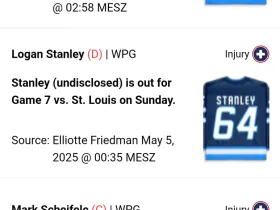 Scheifele und Morrissey werden sie dringend brauchen gegen Dallas. Dazu einen wieder stabilen Hellebuyck denn sonst gibts da wenig Chancen.