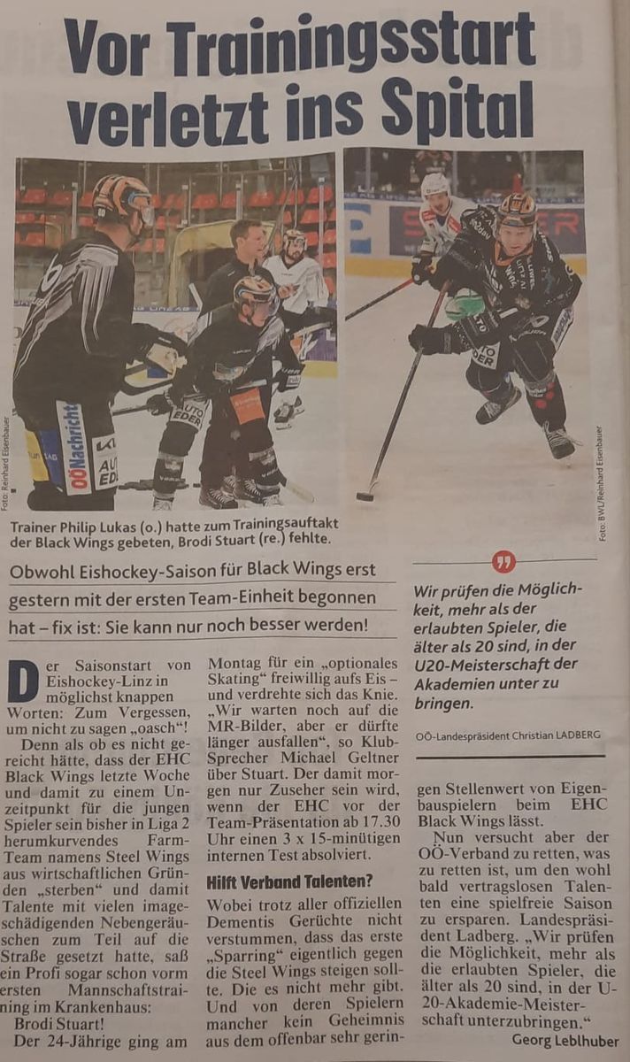 Damit spielen wir bis Weihnachten wieder mit einem Legio weniger. Und das, bevor der erste Puck der Saison wettkampfmäßig überhaupt eingeworfen wurde. Und selbst danach wirds bei so einer Verletzung nicht von einer Sekunde auf die andere gehen, dass Stuart 110% geben kann.