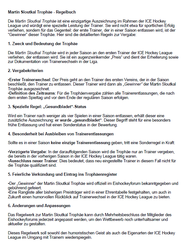 Und ich würde noch die Herkunft der Bezeichnung "Martin Stloukal Trophy" erklären, wäre mMn auch wichtig und respektvoll dem Namensgeber gegenüber.