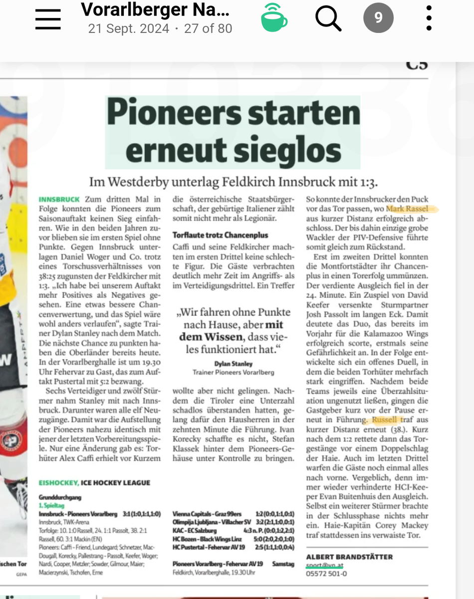 also viel Struktur hab ich heute nicht gesehen. Konnten meist keine "Spielzüge" über 3 Spieler zusammenbringen. Aber: Es bleibt ein Auftaktsieg. Congrats - Haie!