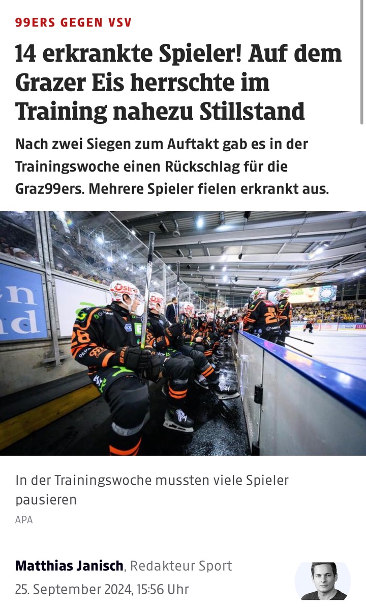 Nach zwei Siegen zum Auftakt gab es in der Trainingswoche einen Rückschlag für die Graz99ers. Mehrere Spieler fielen erkrankt aus.