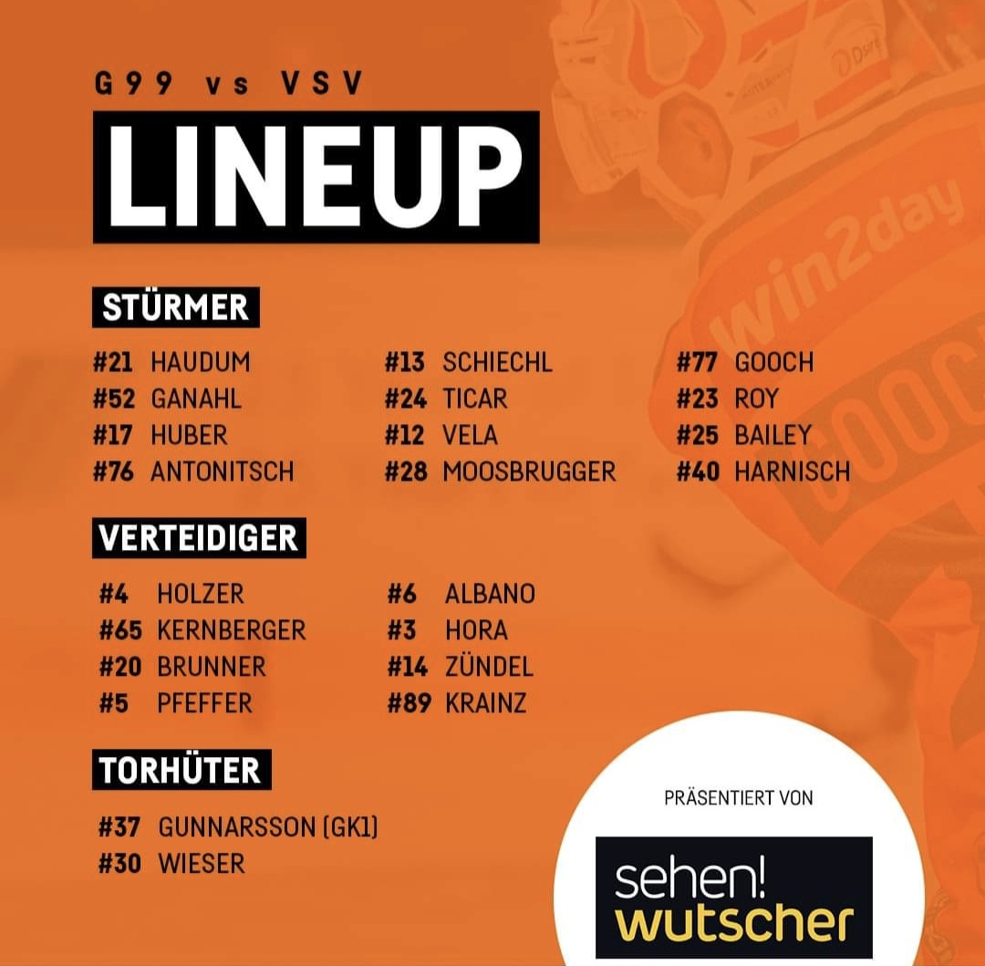Kainz fehlt, dafür Bailey mit seinem ersten Einsatz. Schiechl rückt in die erste Linie vor und Gooch dafür am Flügel.