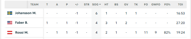 Die -1 kam vom Empty Net Treffer wo sich Faber von Blueger übertölpeln ließ, vielleicht fehlte Faber aber auch einfach die Kraft nach 27min Eiszeit.