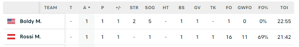 Rossi bis jetzt relativ unauffällig, i glaub es geht ihm ein wenig zu rauh zu heute. Vorgeschmack auf PO Hockey. Bis jetzt starke Partie von Faber, Boldy und Gustavsson.