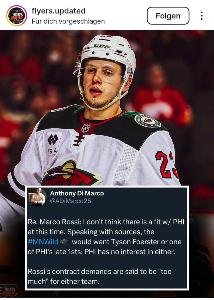 Wenn die Devils Quinn Hughes verpflichten wollen dann wird für Rossi wohl keine Kohle mehr übrig sein.