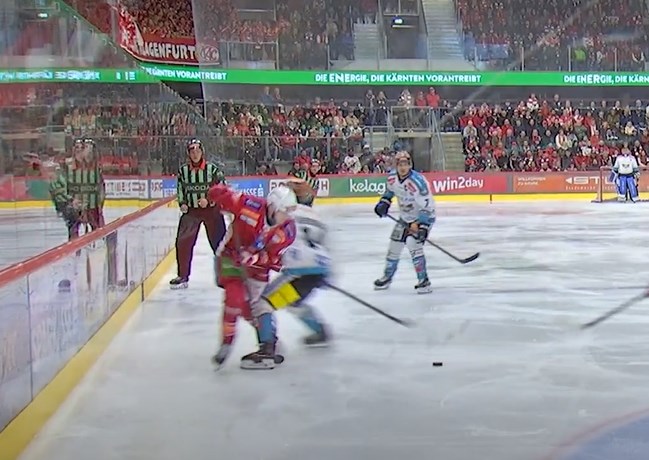 man sieht sehr schön, dass der Puck doch für Eishockey Verhältnisse relativ lange vor den beiden Spielern liegt und Neubauer muss das einfach sehen. Könnte durchaus ein Kriterium sein, der Check war 1. vermeidbar und 2. mit dem Knie vermeidbar.