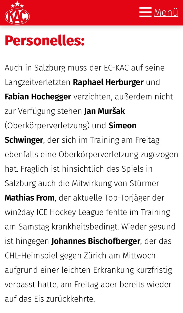 Bis auf das vorige Jahr ist das einfach total krass was der KAC immer an verletzten Spielern hat.