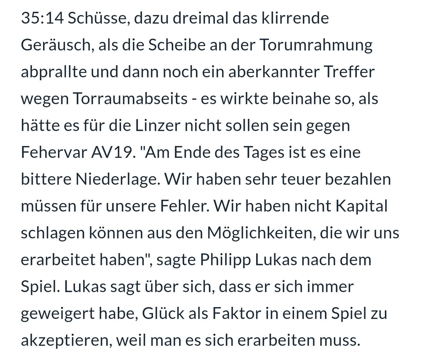 Ich fand das Spiel auf Linzer Seite nicht so schlecht. Nicht so gut wie am Freitag, aber Fehervar hat auch deutlich weniger zugelassen.