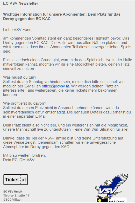 Da ich mir sicher bin, dass der KAC im Longrun auch in dieser Saison wieder signifikant erfolgreicher und begeisternder unterwegs sein wird als das blaue Team, würde mir ein VSV Sieg am Sonntag nichts ausmachen. Sofern es dazu beiträgt, dass sich dort etwas zum Positiven bewegt. Die sind nun Saisonen übergreifend derart unterdurchschnittlich unterwegs, dass mMn mittlerweile auch der „Derbiespirit“ gehörig darunter leidet und sich mit den wieder erstarkten 99-ers und dem Packderbie langsam eine spannendere Alternative anbietet. Man kann nur hoffen, dass es im blauen Stall irgendwann mal wieder bergauf geht und man zumindest in die Mittelmäßigkeit zurückkehrt. Aktuell ist davon gar nichts zu sehen.