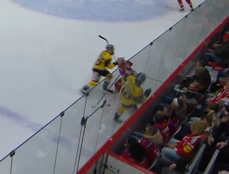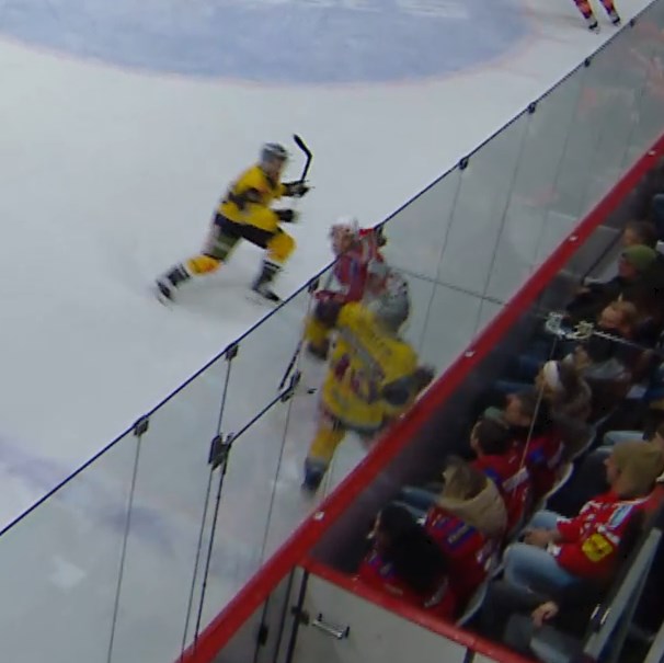 Hat bei einem Check, zwei Mann der Südtiroler waren involviert, einen Ellenbogen gegen den Kopf bekommen. Hat sich kurz geschüttelt, zum Schiedsrichter geschaut und ist dann rausgefahren. Hat nicht spektakulär ausgesehen, hoffen wir es ist nicht viel passiert. Komplett unnötige und wertlose Aktion.