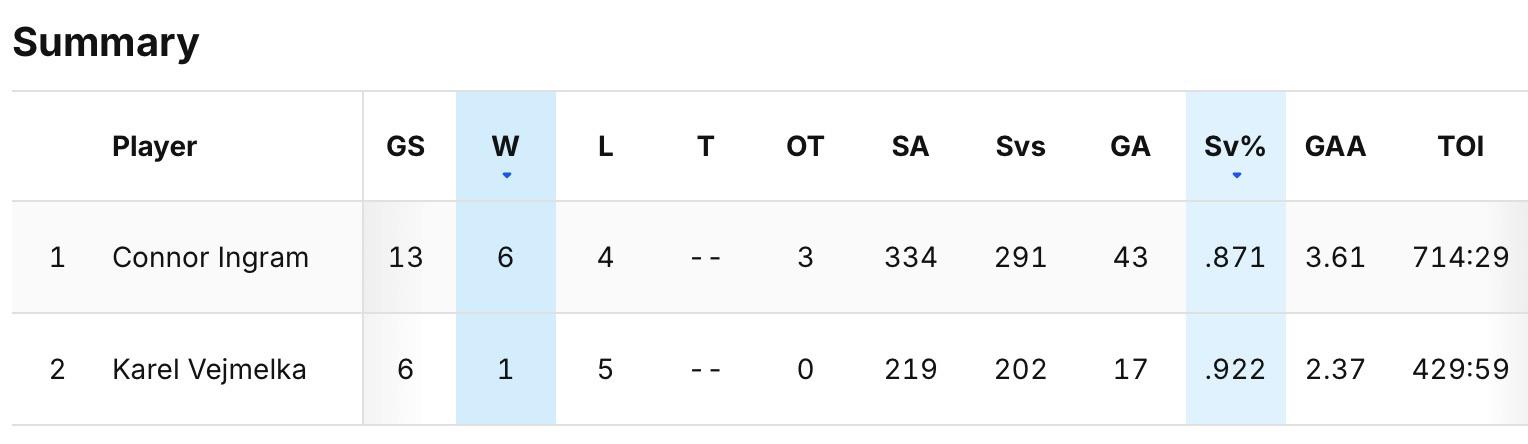 Nur wenn ich mir die SA des Zweiergoalies ansehe (Falls das der mit den 6 Spielen ist) und auf die 13 Spiele des Einsers hochrechne, hat man auf den deutlich mehr Schüsse zugelassen, sagt halt nix über die Qualität der Schüsse aus.