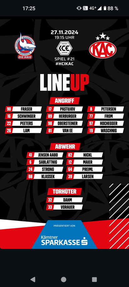 Wir haben 11 Drittel (Weltrekord?) zuhause kein Tor geschlossen. Die letzten 7 Heimspiele verloren. Trotz dezimierten Kader KAC haushoher Favorit!