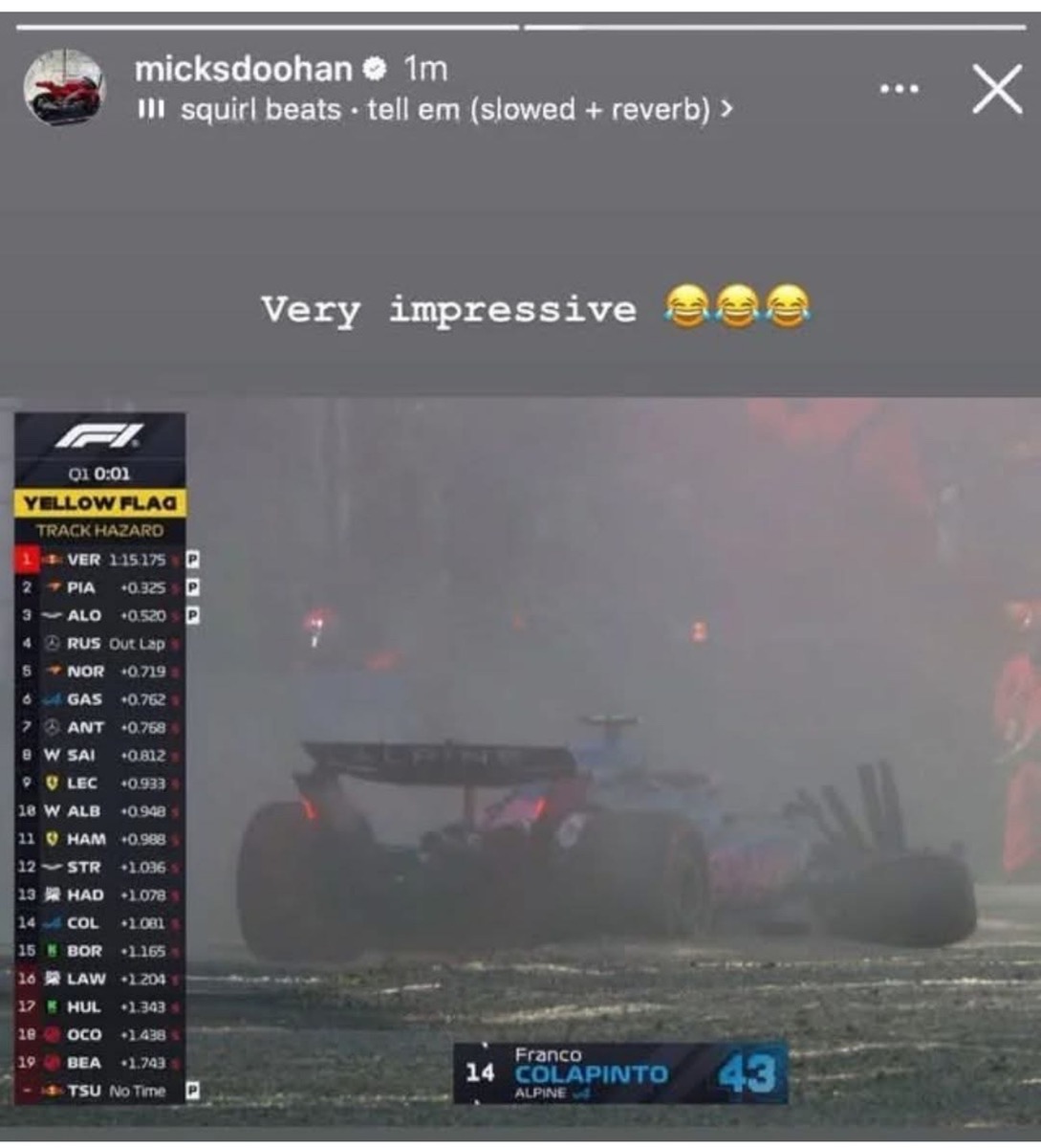 Jack Doohans Vater hatte seinen Spaß mit dem Ausfall im Q1 von Colapinto
