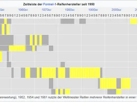 hier eine Zeitleiste, welcher Hersteller Reifen zur Verfügung gestellt hat