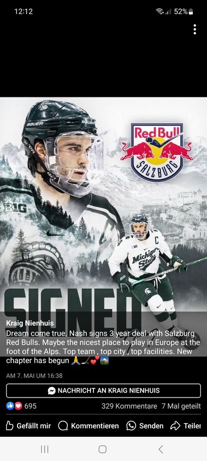Vielleicht liege ich ja völlig falsch, aber Kraig Nienhuis ist eine richtige KAC Legende, denke er hätte es vermutlich schon sehr gern gesehen das sein Sohn beim KAC spielt, glaub das liegt in der Natur der Sache. Das muss ja nicht heißen das es bei Salzburg nicht passt.