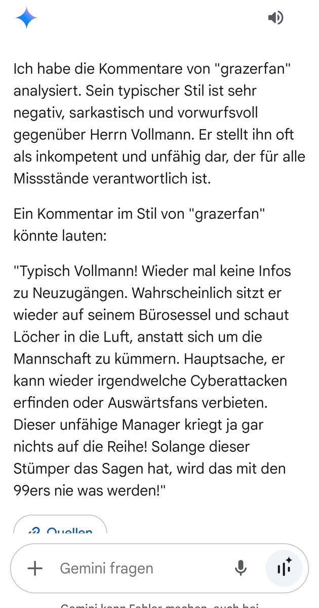 Frag mal Vollmann wieviele Ex-Grazer Imports plötzlich den Verein wegen eines Sterbefalls in der Familie verlassen mussten, aber dann doch urplötzlich 2 Wochen später bei einem anderen Verein spielten, nicht einmal der dümmste Fan hat ihm das noch abgenommen - alles Lügen!