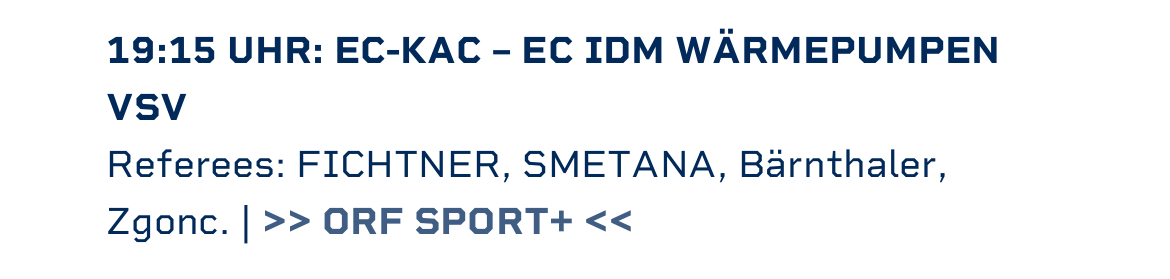 Runde 39, DERBYTIME KAC gg. VSV, Mittwoch 08. Jan. 2025 19:15 Uhr - live auf ORF Sport +